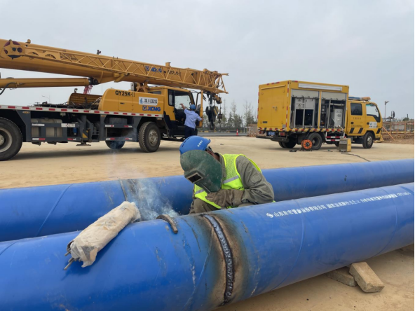 此次管線遷改共需對(duì)2條道路(復(fù)興大道、縱九路)4個(gè)路口共計(jì)1600余米的供水管線進(jìn)行遷改,該工程工期短、地下管線情況復(fù)雜,施工難度教高。為高效配合完成京港澳高速公路改擴(kuò)建工程,全力保障復(fù)興大道、縱九路及周邊企業(yè)、用戶正常用水,公司克服一切困難,對(duì)高速擴(kuò)建施工實(shí)施24小時(shí)全天候配合保障,并提前一個(gè)月組織專(zhuān)業(yè)技術(shù)人員多次進(jìn)行現(xiàn)場(chǎng)踏勘,細(xì)化管線施工連接點(diǎn)位置、停水時(shí)間、焊接點(diǎn)位和方式,制定周密管線遷改接水方案,為新舊管道連接敷設(shè)做好了充足準(zhǔn)備。