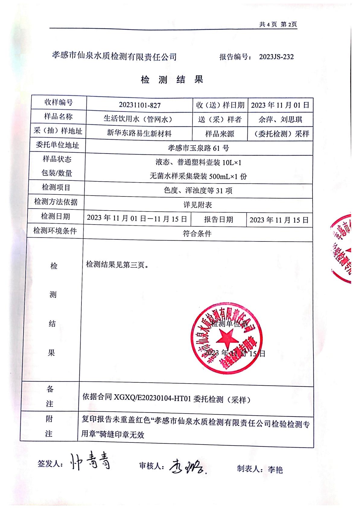 2023年11月檢測(cè)報(bào)告