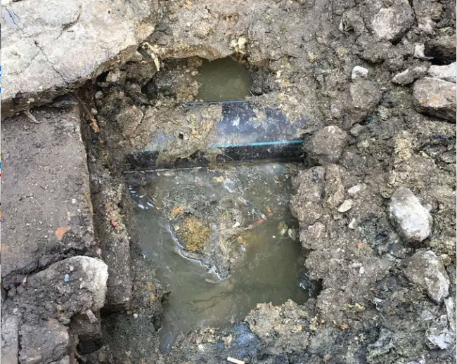 來到居民樓下,濃重的異味撲面而來。與反映情況的居民取得聯(lián)系后,維修中心工作人員顧不得四處漫溢的污水和刺鼻的氣味,逐段打開下水蓋板進行檢查。現(xiàn)場排查發(fā)現(xiàn),居民樓自來水進水管雖然與下水涵管相鄰,但與下水道過水并無任何關(guān)聯(lián),這一結(jié)論也得到了圍觀群眾的見證和認(rèn)可。應(yīng)住戶的要求,工作人員又繼續(xù)對沿線下水道進行清查,最終找到了淤塞的原因:此處有兩條天然氣管道橫穿下水涵管,影響正常過水,加上周邊餐飲點較多,排入下水道的油污長期沉積,遂導(dǎo)致數(shù)十米下水道嚴(yán)重堵塞。