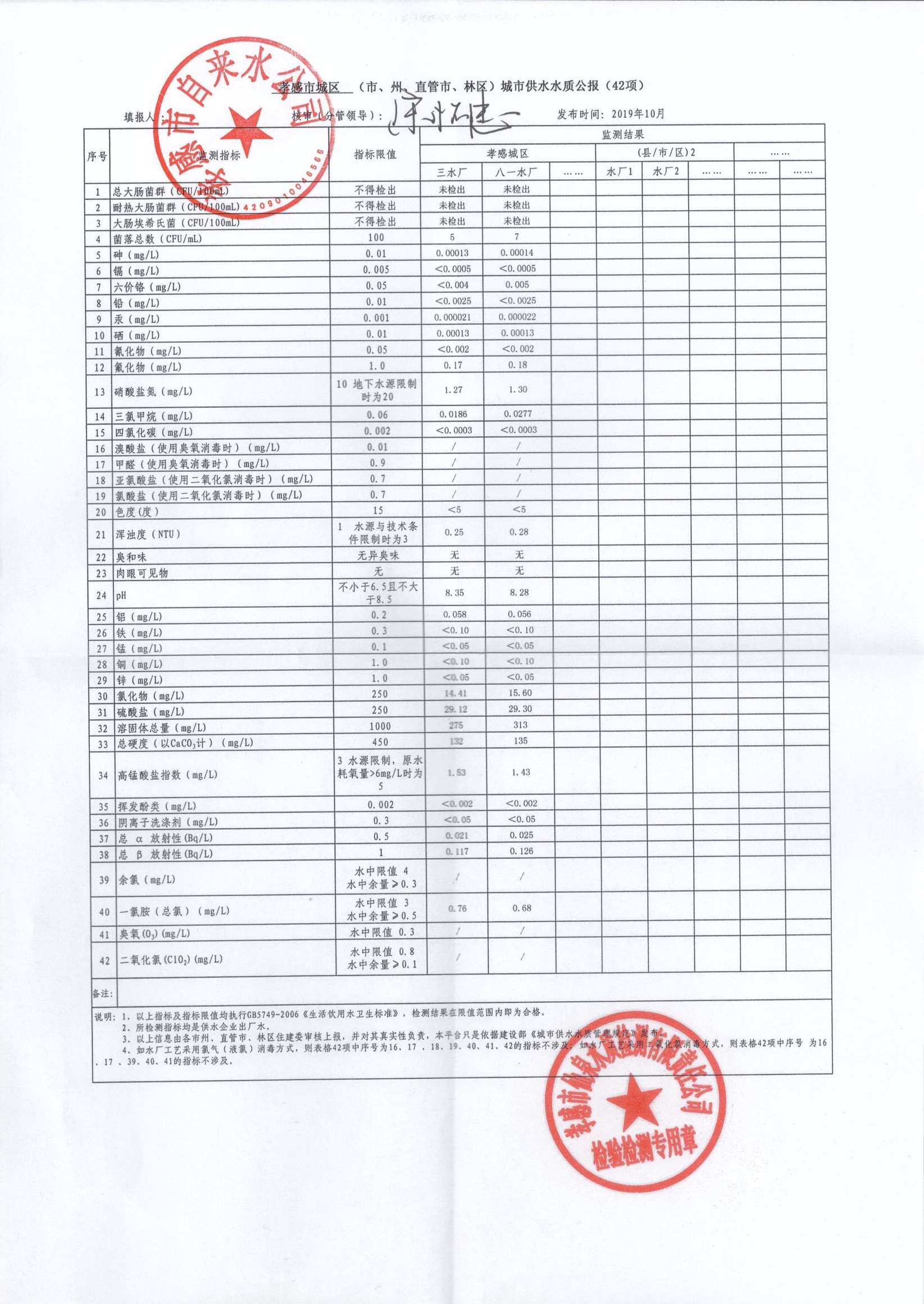 2019年10月水質報告